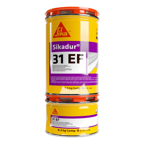 Sikadur®-31 EF é uma cola estrutural e argamassa de reparação em dois componentes, à base de resinas epoxi e cargas especiais, isento de solventes, tixotrópico que pode ser aplicado em superfícies com alguma humidade, para utilização a temperaturas entre +10 °C e +30 °C.